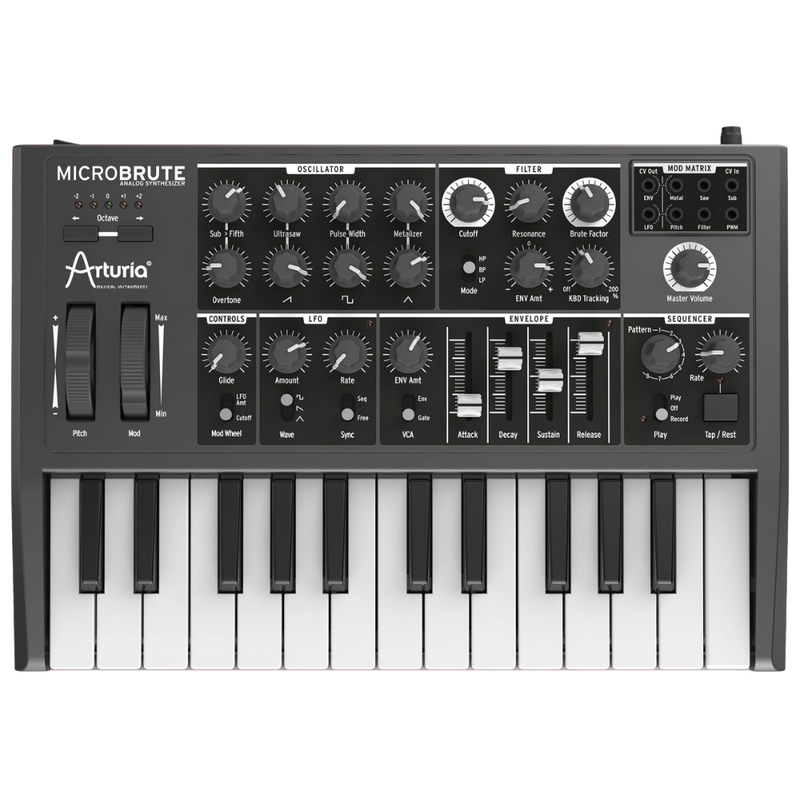 Compact, portable, and sonically powerful, the Arturia MicroBrute is ideal for beginners exploring analog synthesis as well as professionals seeking a distinctive, travel-friendly synth. Its combination of classic analog character, modern control, and robust connectivity makes it an essential tool for crafting everything from deep basslines and sharp leads to experimental textures.