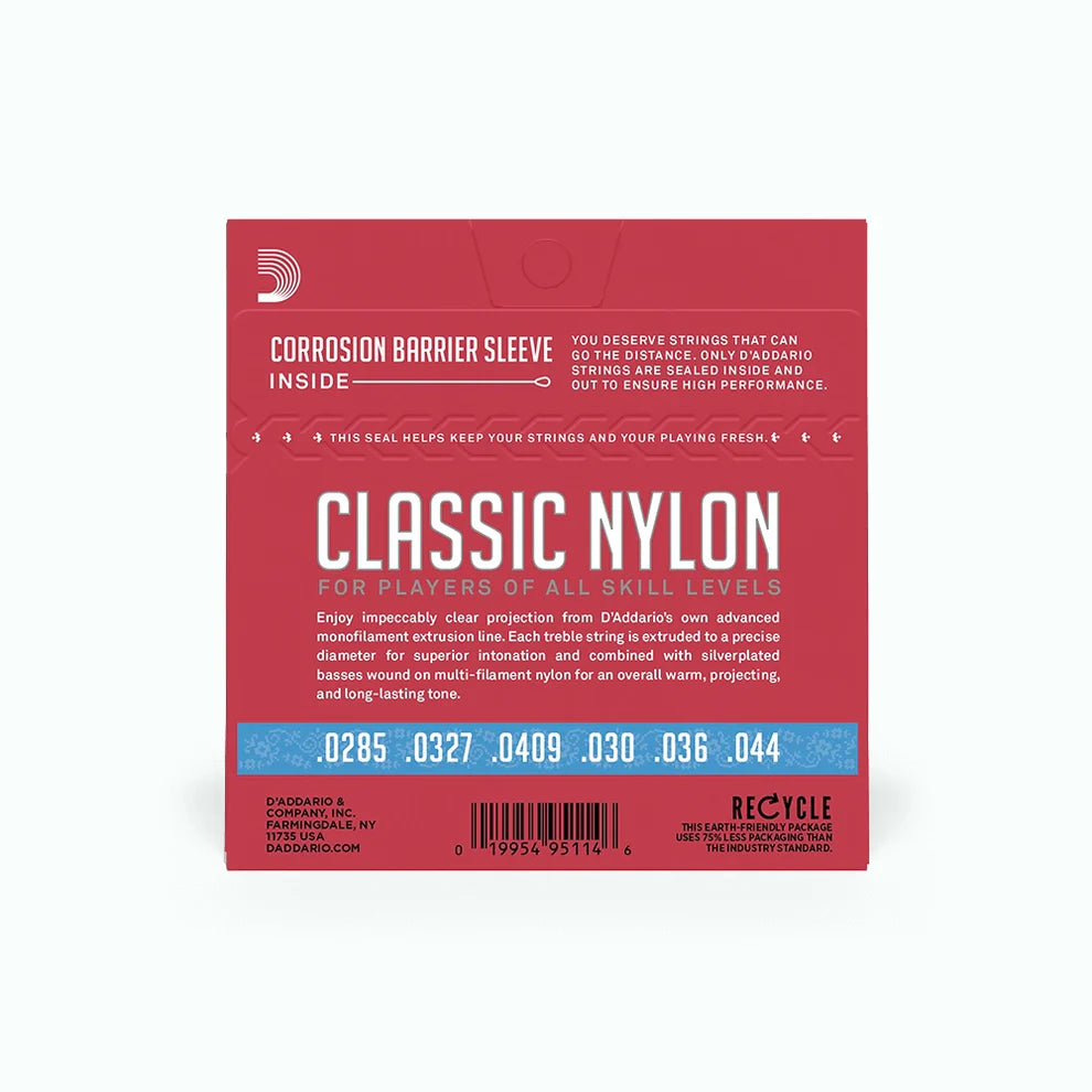 specifically for beginner classical guitarists. The traditional combination of silver-plated copper wound over nylon and clear nylon trebles, brings a charmingly mellow balance, which strikes a chord with students. Classic Nylon sets are also available in smaller sizes to accommodate learner instruments. This Hard tension set provides rich, bold tone and strong projection.