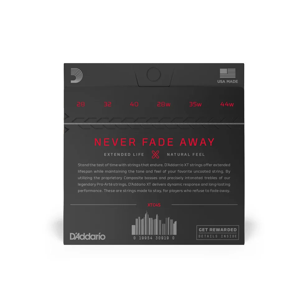 XT are our longest lasting classical strings, combining centuries of D’Addario expertise with modern coating technology. XT Classical features our composite basses, constructed with a long-lasting multifilament core, wrapped with silver-plated copper, and finished with our proprietary XT coating, for bold, projecting tone and extended life span. They’re complimented with our precision Pro-Arté nylon treble strings which provide the warm, mellow charm traditionalists love. This Normal Tension set is our best-selling tension, preferred for its balance of rich tone, comfortable feel, and dynamic projection.