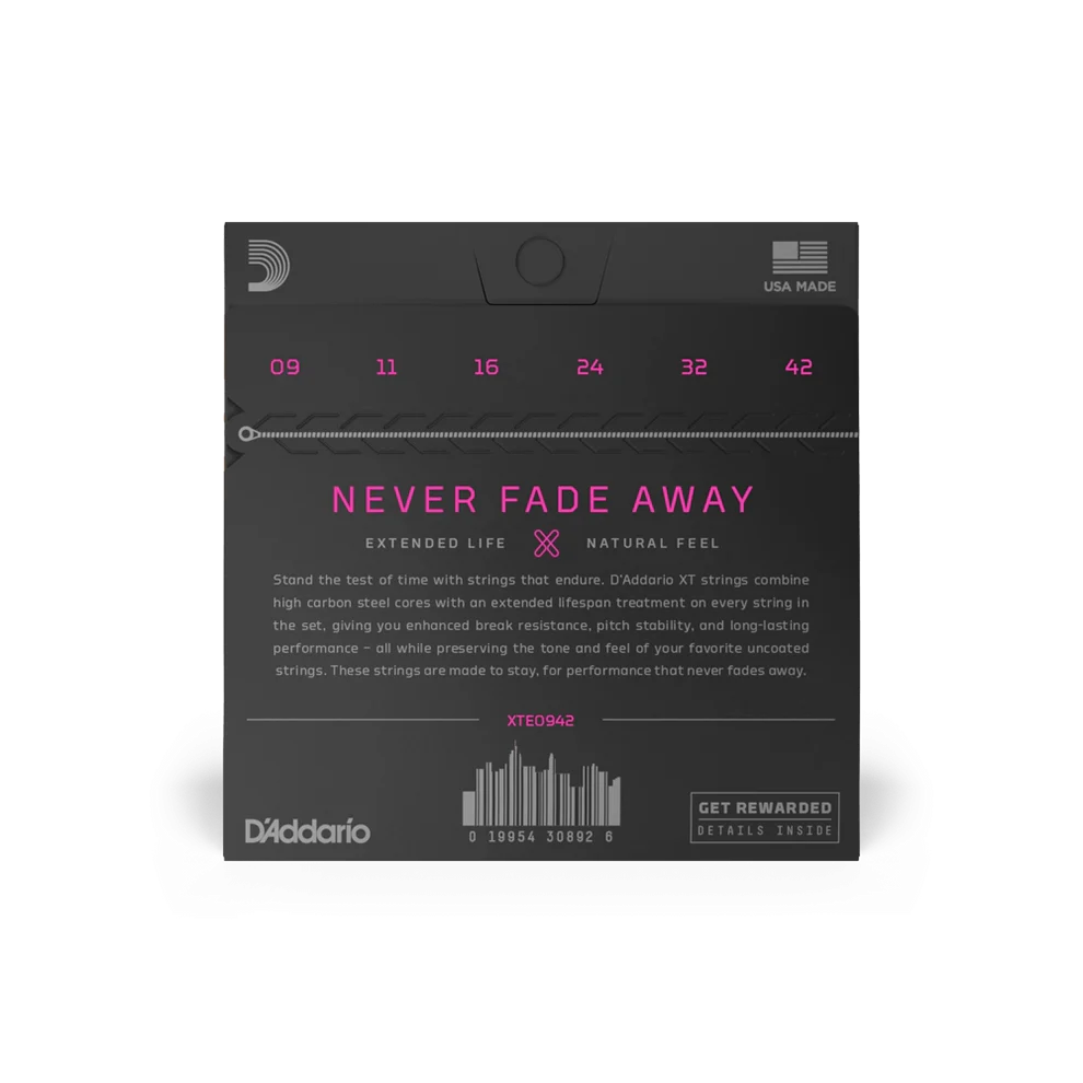 XT Nickel coated electric guitar strings offer enhanced break resistance, better pitch stability, and longer-lasting performance than standard electric strings. The XT coating, applied to each string in the set, delivers advanced corrosion resistance, while still retaining the bright tone and natural feel of the uncoated string. Beneath the coating, XT Nickel are made with a NY Steel core, nickel-plated steel wrap wire, and Fusion Twist technology, resulting in added resilience and tonal versatility, excellent for a wide range of musical styles. 9-42 Super Light gauge strings are easy to bend and very flexible.