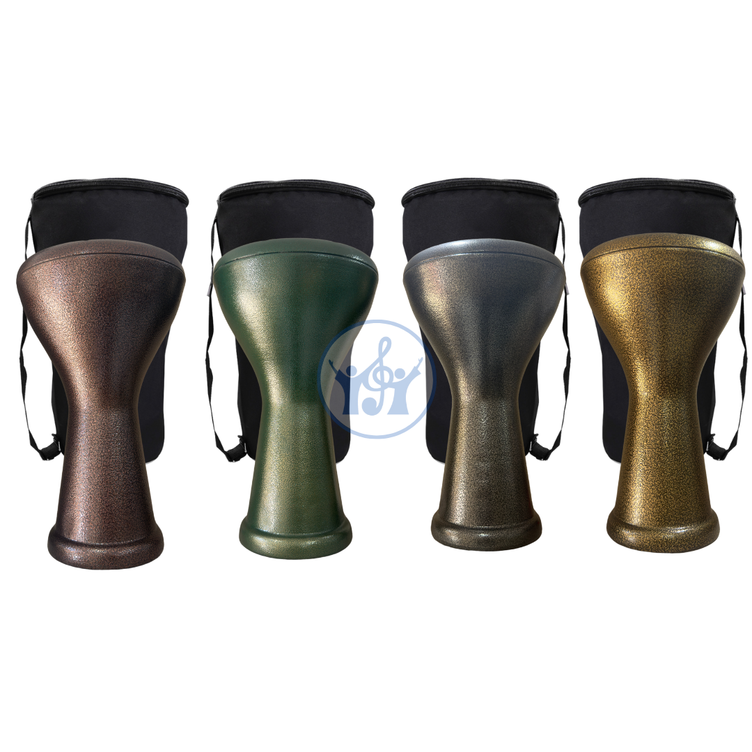 Experience the rich rhythms of traditional Middle Eastern music with the Darbouka Package from Musical Buddies. This 8-screw darbouka is meticulously crafted to deliver deep, resonant tones and sharp, crisp high notes, making it an excellent choice for both beginners and seasoned percussionists. Its durable construction ensures longevity, while the included padded gig bag provides protection and ease of transport, allowing you to take your music wherever you go. Whether you're practicing at home or performing on stage, this darbouka offers exceptional sound quality and reliability.