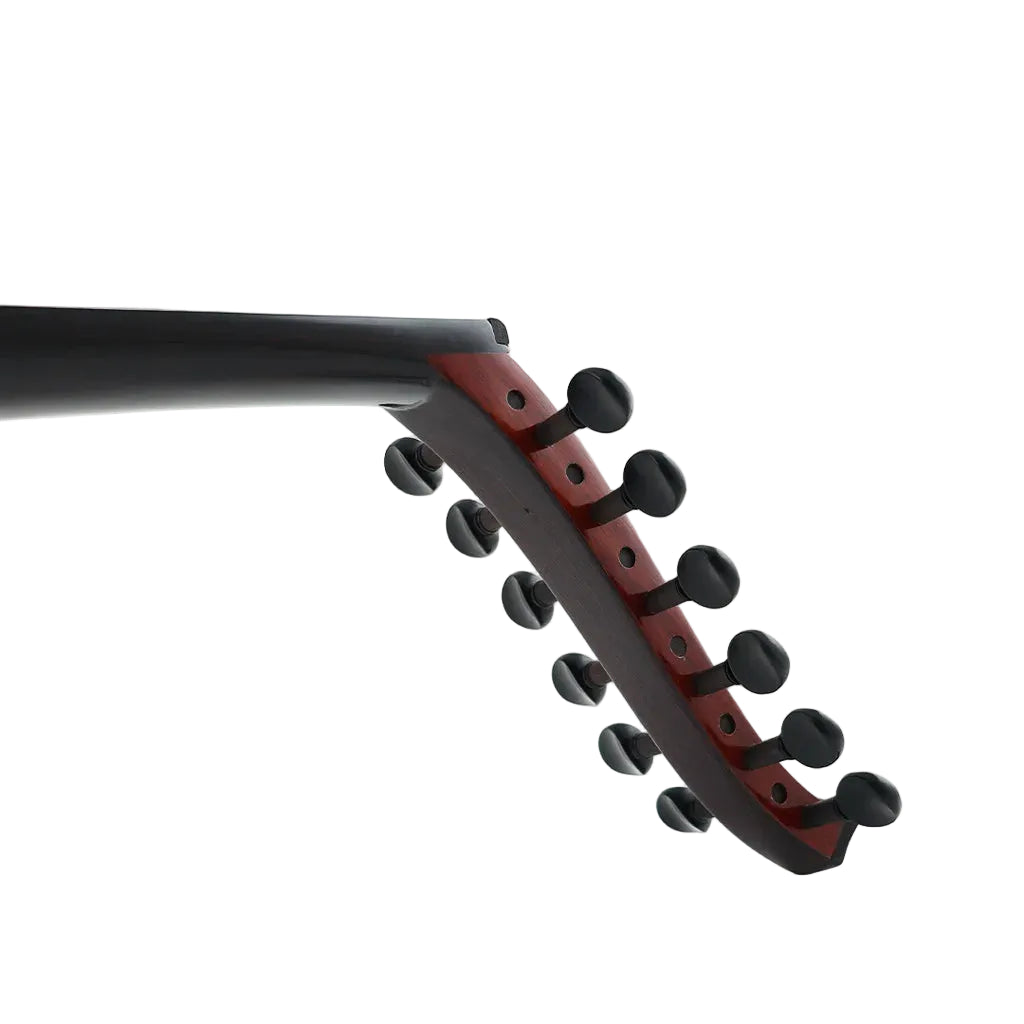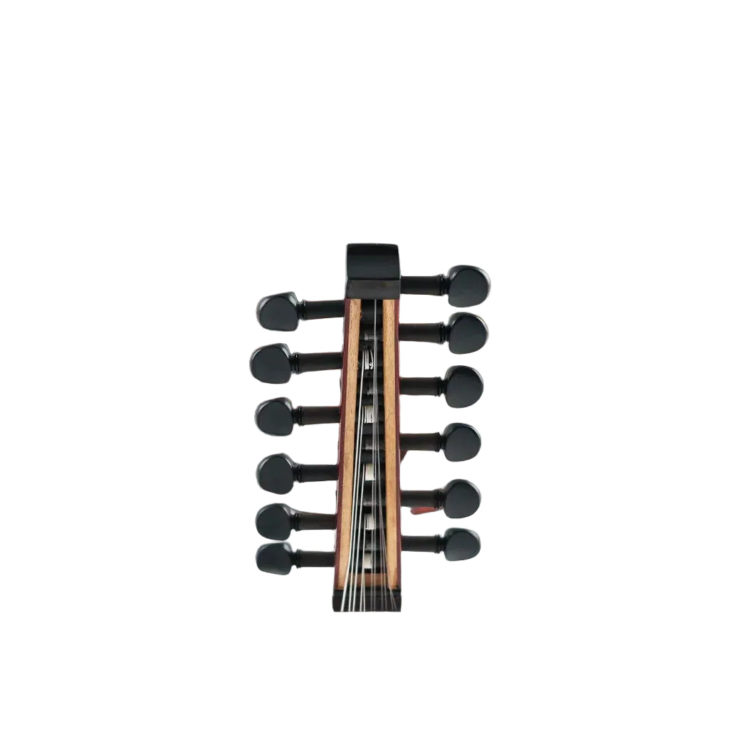 The Ember 2 is where tradition meets personality—a six-string oud that refuses to be boring. Built with a solid spruce top that sings with brightness and clarity, this beauty features a striking wenge and padauk bowl finished in glossy nitrocellulose that catches the light like a stage spotlight. Three oval sound holes give it a contemporary edge while honoring classic oud aesthetics. Tuned to Fff (Fa-Fa), the Ember 2 delivers rich, resonant tones that blend traditional warmth with modern character. Ebony pegs keep everything locked in tight, while the 19.5 cm neck and 58.5 cm scale length make navigating intricate melodies and complex rhythms feel natural, not cramped. The floating bridge setup amplifies tonal richness and sustain, adapting beautifully to your playing style—whether you're commanding a stage, laying down tracks in the studio, or exploring new sounds at home. This is an instrument for players who know what they want: superior playability, exceptional sound, and a design that turns heads. The Ember 2 inspires both dedicated students pushing their craft and seasoned performers chasing that perfect note.