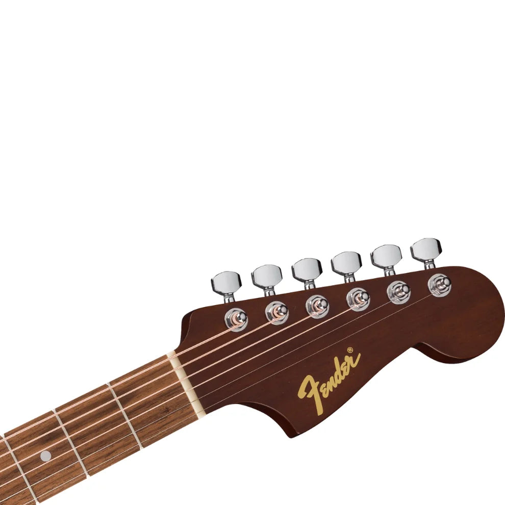 The Fender California Debut™ Redondo® delivers classic Fender style with a modern acoustic feel. Its resilient laminate construction features a spruce top and basswood back and sides, producing rich, balanced tone. The 25½" scale neck with a slim “C”-shaped profile ensures effortless playability, complemented by an oiled walnut fingerboard and bridge. Sealed-gear tuners offer smooth, accurate tuning, while the satin finish gives the guitar a timeless look.