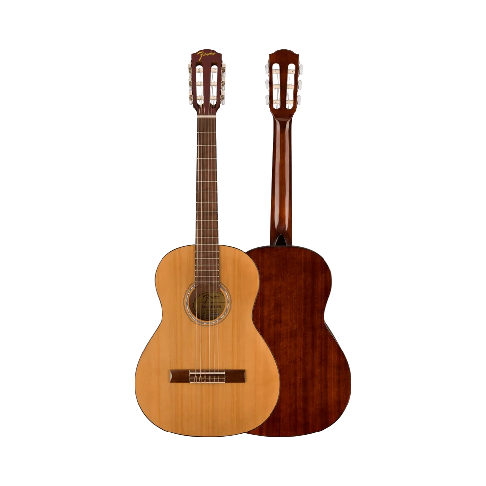 The ¾-size nylon-string FA-15N guitar offers a visually stunning instrument at a budget-friendly price. Quality laminate construction with a modern Fender 3+3 headstock and walnut bridge create an instrument that is not only easy to play, but also sounds great. Beginners and developing players will appreciate the style of this guitar, which features a mahogany neck that gives the guitar a lively tone and feel.