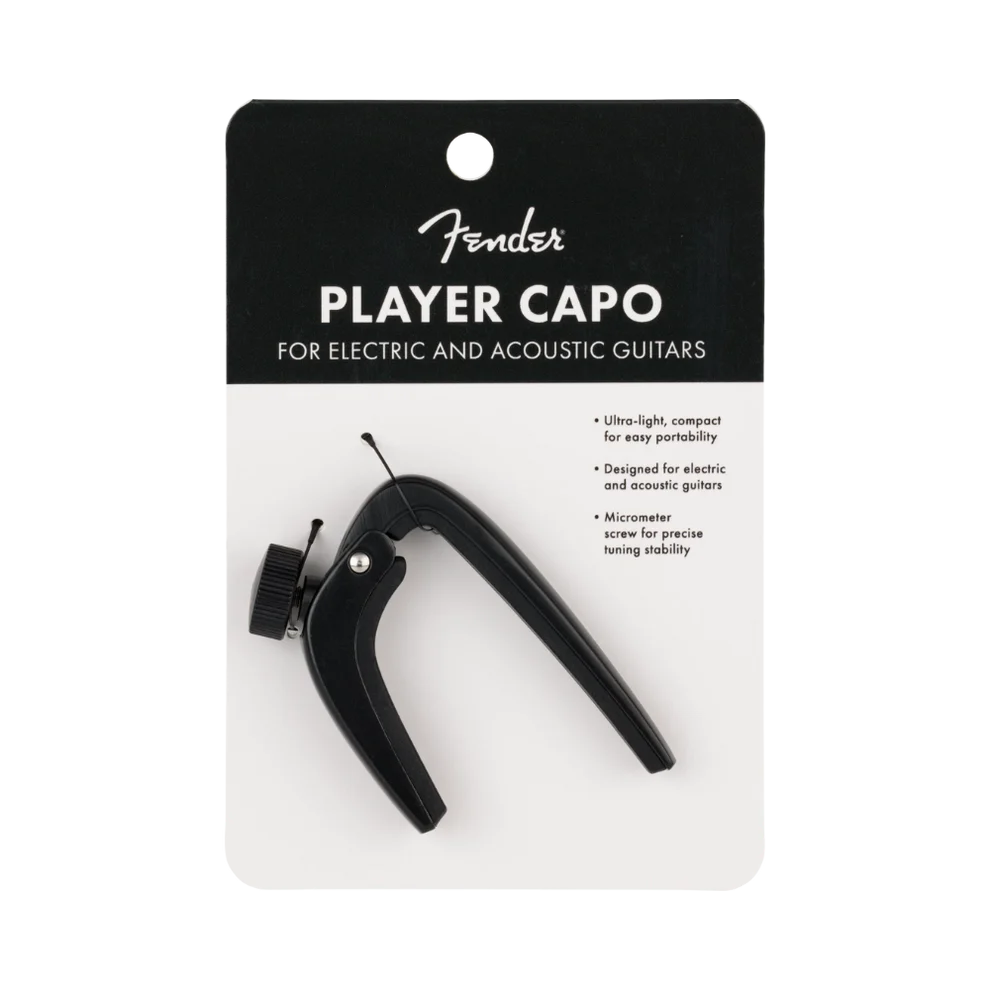Designed for both electric and acoustic guitars, the Fender Player Capo delivers dependable performance in a compact, ultra-lightweight design. The micrometer screw knob allows you to easily adjust tension to match your playing style—ensuring balanced intonation while eliminating fret buzz. With its finish-safe rubber padding, the Fender Player Capo provides a secure grip for all-day playing and long-term reliability.