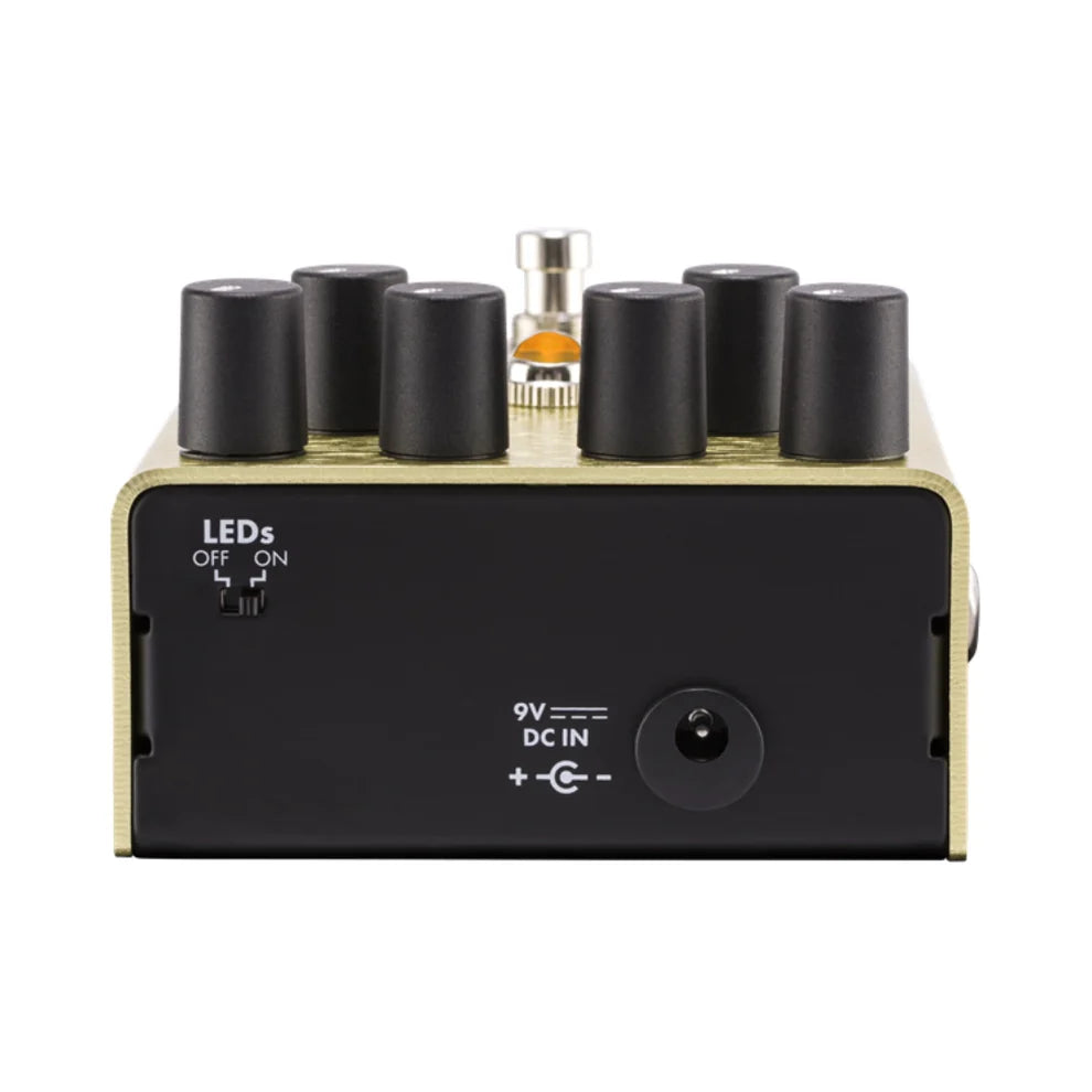 Designed by our in-house team of experts, the Pugilist Distortion is an all-original circuit. We consulted with a plethora of players while designing this pedal, and the resulting stompbox is packed with stage-ready features. The chassis is crafted from lightweight, durable anodized aluminum, and the Amp Jewel LED gives your pedalboard the classic Fender look. The LED-backlit knobs show your control settings on a dark stage at a glance.
