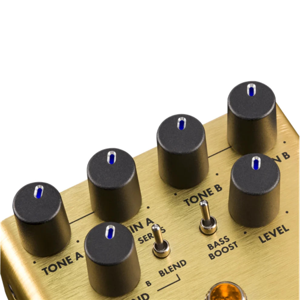 Fiery sounding and flexible, the Pugilist Distortion is ready to add some heavyweight gain to your rig. This original design features dual gain engines - with independent tone controls for each - letting you select multiple variations of distortion, ensuring this pedal will play well with any rig. Series/Blend switch lets you stack channels for thick, cascading distortion, while the Bass Boost switch fattens up your tone. The Blend control mixes the two channels to get the best of both worlds, crafting a sound just for you.