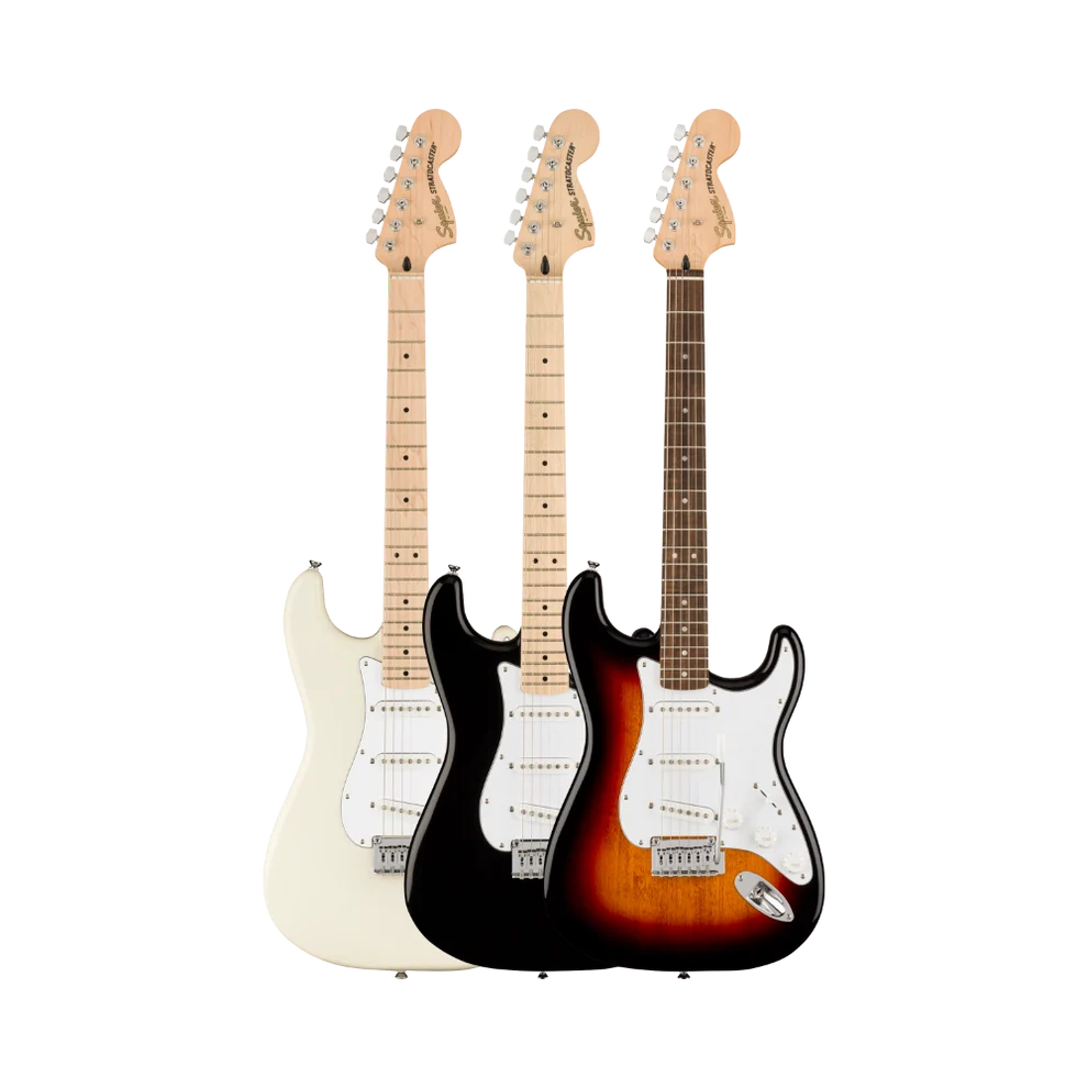 A superb gateway into the time-honored Fender® family, the Squier® Affinity Series® Stratocaster® is designed to deliver legendary style, iconic tone, and modern playability for today’s aspiring guitar hero. With its sleek and lightweight body, this Strat® offers comfort for long playing sessions, while the slim “C”-shaped neck profile ensures a smooth and effortless feel in any hand position. The upgraded 2-point synchronized tremolo bridge enhances playability with superior tremolo action, while the sealed die-cast tuning machines with split shafts provide stable, accurate tuning and make restringing quick and easy.