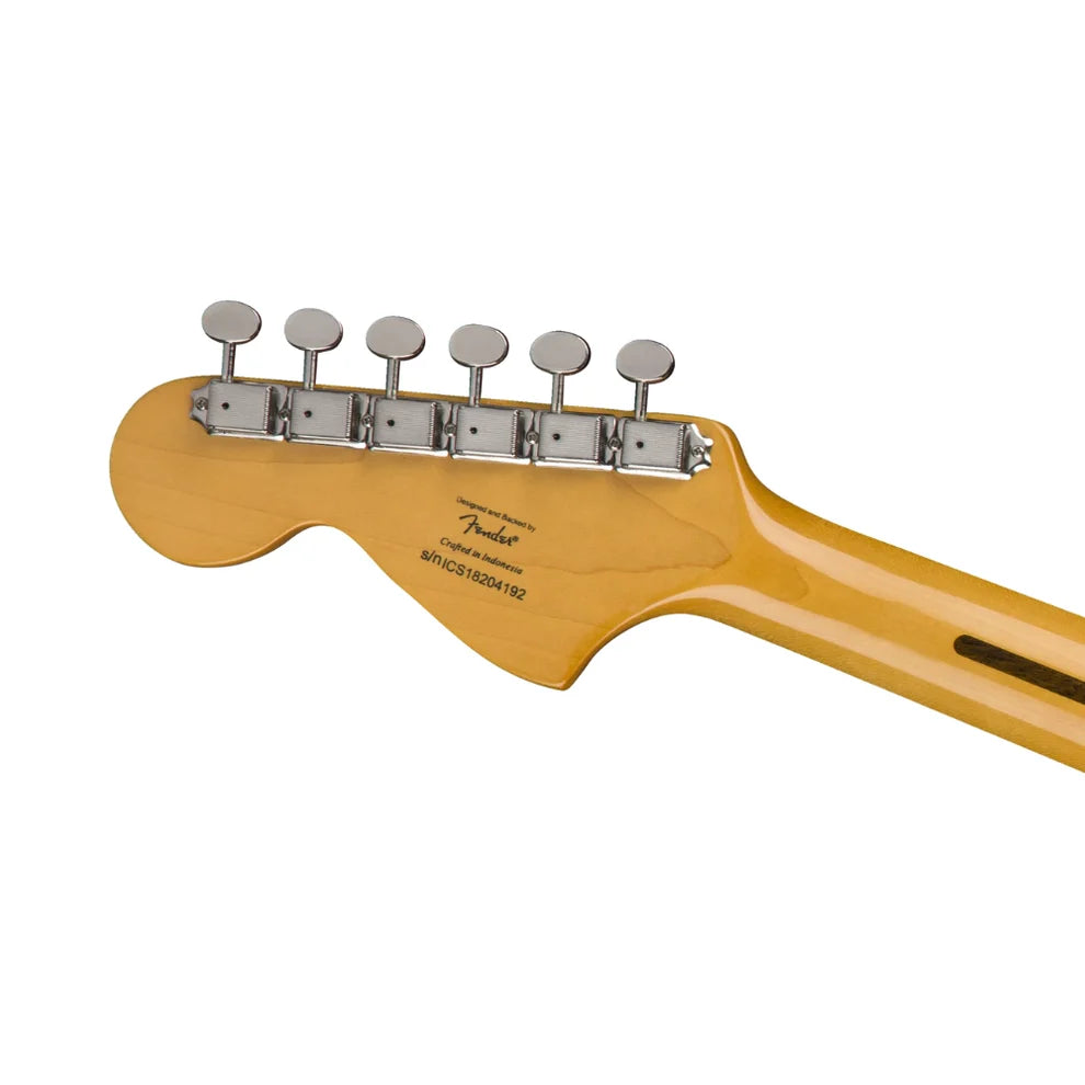 Designed with comfort and playability in mind, this model features a slim “C”-shaped neck profile, an Indian Laurel fingerboard with a 9.5” radius, and narrow-tall frets for smooth, precise playing. A vintage-style synchronized tremolo bridge allows expressive string-bending effects, while nickel-plated hardware, 1970s-inspired headstock markings, and a vintage-tint gloss neck finish give this guitar an unmistakable retro vibe.