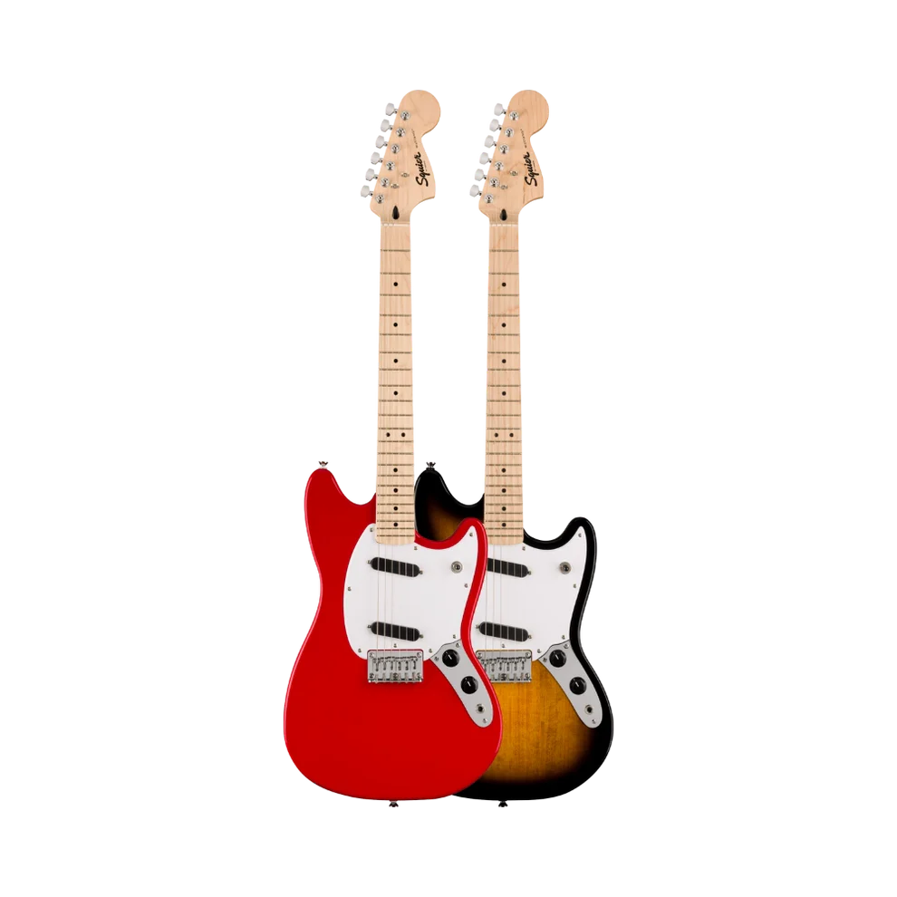 The Squier Sonic® Mustang® is designed to launch any musical journey into overdrive, delivering classic Fender® style and an inspiring tonal range for players of all levels. With its slim and comfortable "C"-shaped neck profile and lightweight, contoured body, this Mustang ensures effortless playability and extended comfort during practice or performance. Equipped with a pair of Squier® single-coil pickups, it produces clear, articulate tones that adapt seamlessly to a wide variety of musical genres.