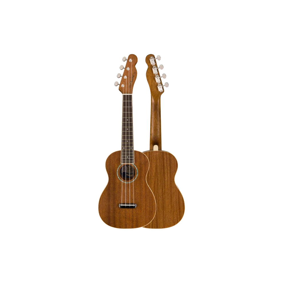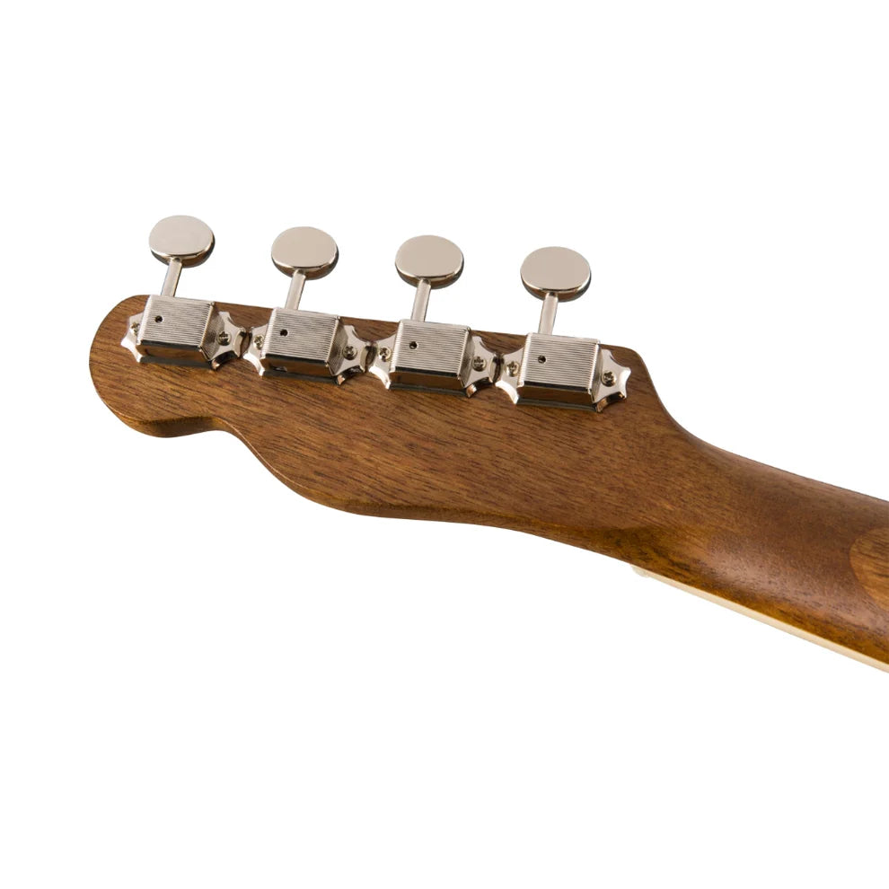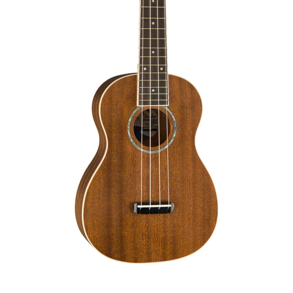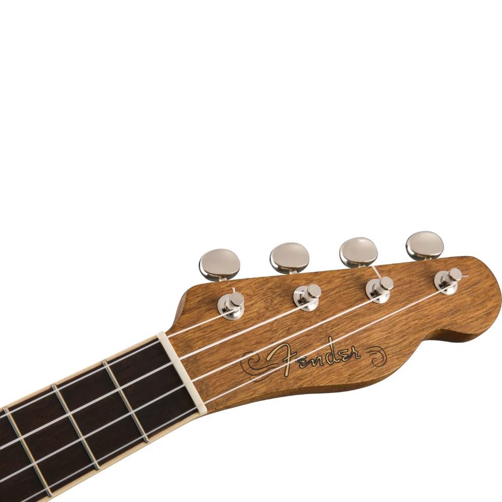 The 16-fret neck provides extended range and comfortable play, while the no-tie bridge allows quick, easy string changes. Stylish features like the abalone rosette, bound top, back, fingerboard, and 4-in-line Tele® headstock with vintage-style tuners add signature Fender flair. Perfect for both beach sessions and studio jams.