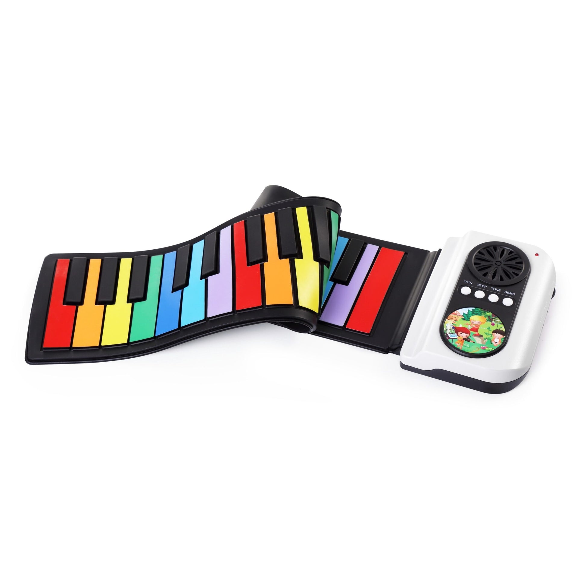 Flexible Roll Up Keyboard Piano Portable Foldable Silicone Piano 37 Key with Speaker Rainbow