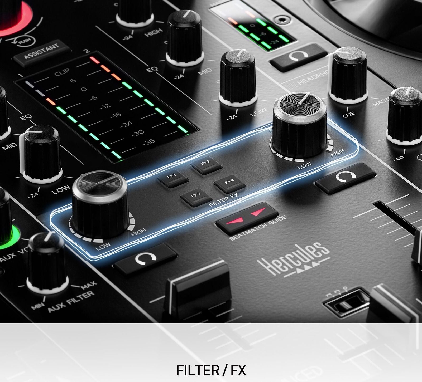 AUX Filter: Independent knob for smooth external audio integration