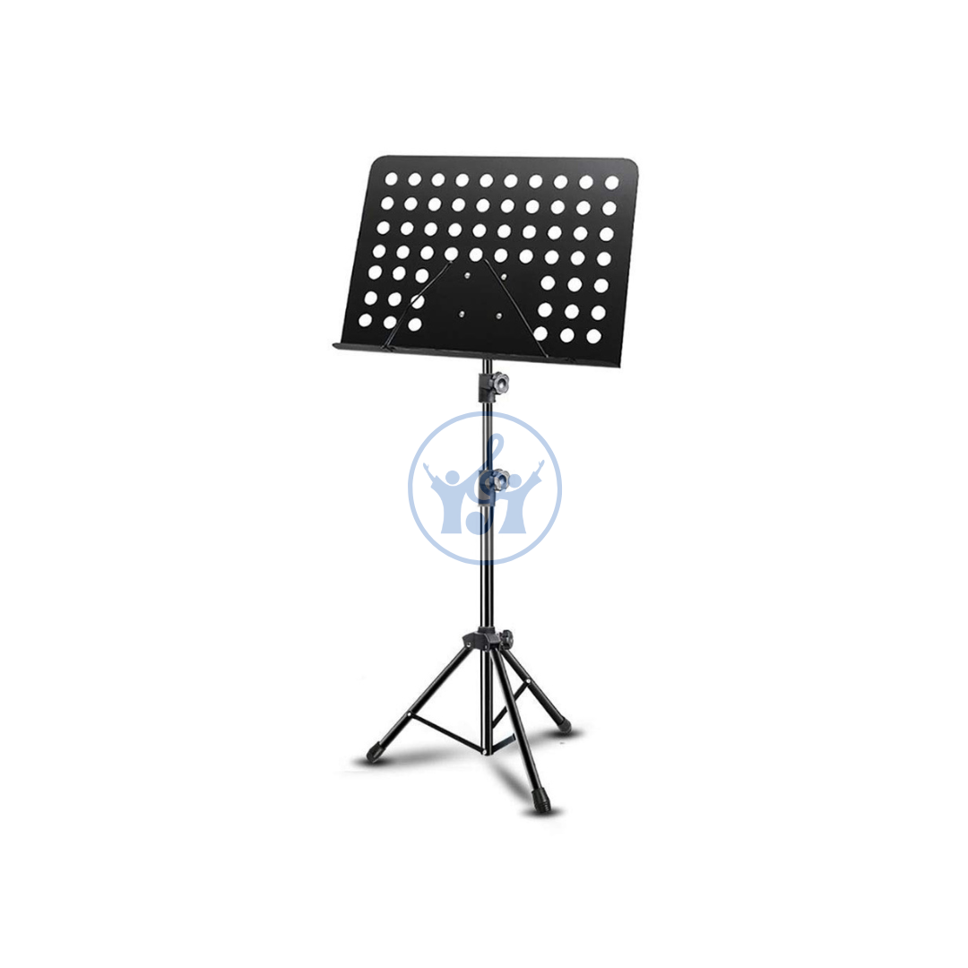 Designed for the discerning musician, stability, durability, and adjustability. Its heavy-duty perforated metal tray securely supports sheet music, scores, and books, making it ideal for rehearsals, performances, and studio use. The robust tripod base ensures steady placement, while the adjustable height accommodates both seated and standing positions.